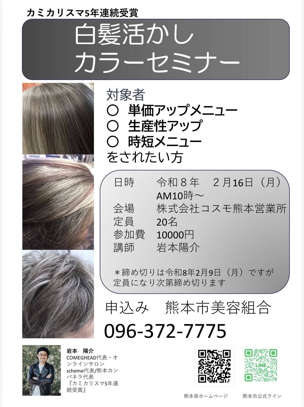 COMEGHEAD 代表 岩本 陽介の「白髪活かしセミナー」のお知らせ